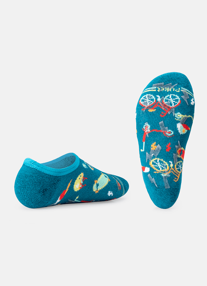 Meia com modelagem sapatinho com desenho divertido de esporte radical. Produzida com algodão macio em sua maior parte poliamida. Possui acabamento em viés.. Solado com antiderrapante com aroma de menta. Indicação de uso: Ideal para praticar exercícios e brincadeiras sem o uso de calçado e no dia a dia em casa. Lavagem a mão Não alvejar Instruções de Conservação: Não secar em tambor Não passar Não limpar a seco (MAIS INFORMAÇÕES, VIDE NA ETIQUETA) Instruções de Garantia: Deverá ser encaminhado dentro na embalagem original ACOMPANHADO DE NOTA FISCAL E com todos os itens constante na solicitação da compra.