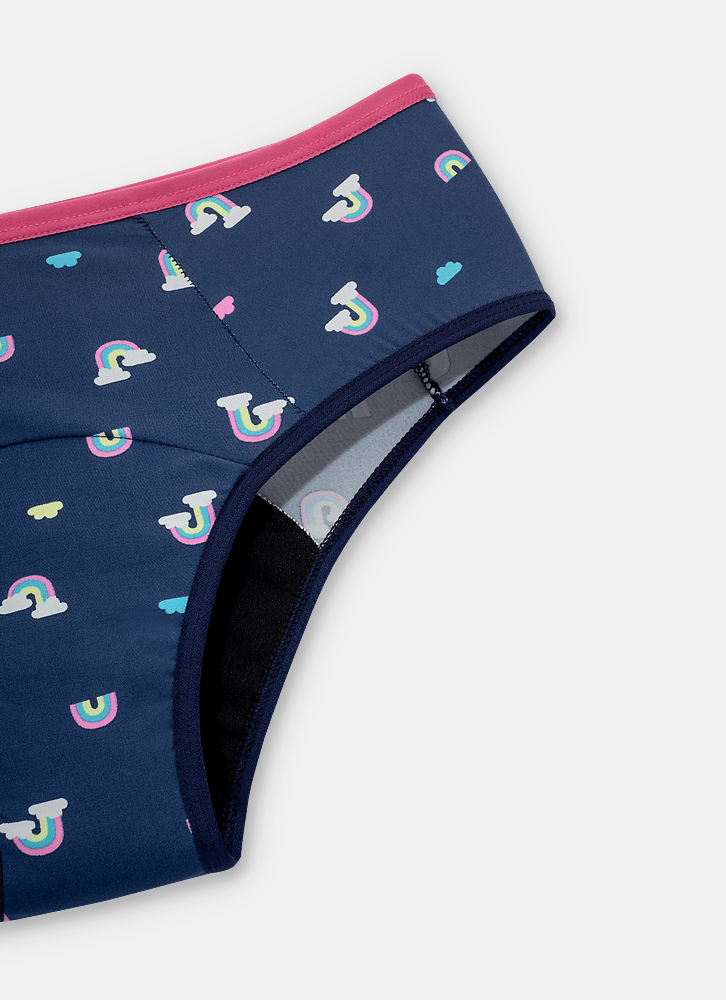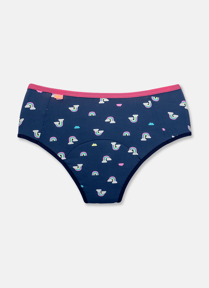 • Calcinha Absorvente Ovelha Fun • Modelo: Boneca • Tecido: Microfibra de poliamida • Toque geladinho • Estampa de arco íris • Tecido Externo: 89% Poliamida / 11% Elastano A calcinha absorvente possui 4 camadas de absorção proporcionando muito mais segurança, qualidade e conforto durante o período menstrual. • Composição forro 1: 55% poliamida / 45% poliéster • Composição forro 2: 85% poliamida / 15% elastano • Composição forro 3: 53% poliéster / 40% poliamida / 7% elastano • Composição forro 4: 88% poliéster / 12% elastano • Acabamento em elástico macio •Cuidados e recomendações: A calcinha com tecnologia absorvente deve ser lavada com água corrente e sabão neutro. Não use alvejante, amaciante ou qualquer produto que os contenha na composição (esses produtos comprometem a capacidade de absorção). Secar a sombra em local fresco e arejado. Não torça, evite rompimento da costura. Deixe de molho por no máximo 30 minutos. Enxague bem para não haver nenhum resquício de sabão entre as camadas de tecido e não causar nenhuma irritação na pele. •Como guardar sua calcinha absorvente? Quando estiver fora de casa guarde sua calcinha (limpa ou usada) em saquinho impermeável individualmente e lave assim que possível. •Qual é o meu tamanho? O seu tamanho é aquele que te deixa mais confortável e segura •O tempo máximo de uso vai depender do seu fluxo em cada dia. (O máximo são 6 horas) •Faça os primeiros testes em casa, para analisar quanto tempo ela funciona para você (não esqueça de lavar antes de usar). Se não estiver se sentindo sequinha é porque é hora de trocar. •Bem cuidada, ela dura por até 2 anos, mantendo a capacidade de absorção por até 80 lavagens.