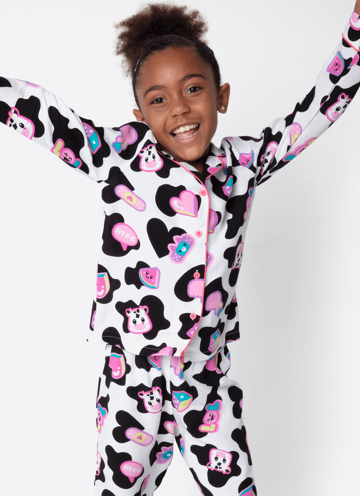 Pijama Manga Longa Viscose Menina Vaca Patches