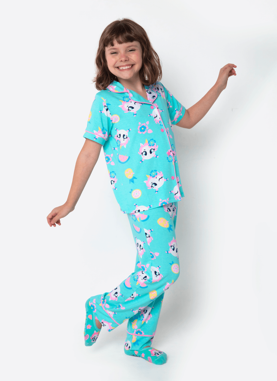 Pijama Manga Curta Viscolycra Menina Unicórnio Aloha