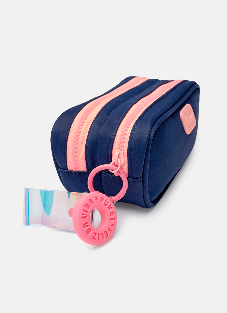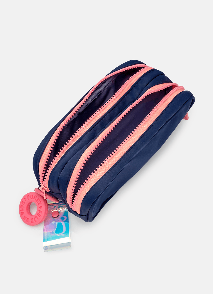 O estojo duplo em nylon na cor azul marinho possui 2 compartimentos, o que é ótimo para o armazenamento dos seus itens. Acompanha chaveiro diferenciado no bolso frontal