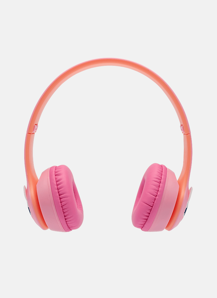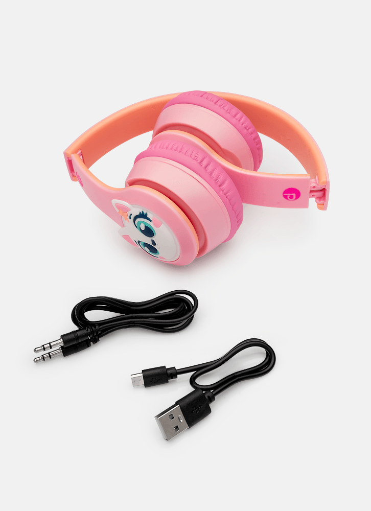 Fone de ouvido sem fio com conexão bluetooth. Detalhe de aplique emborrachado de Gatinha com LED.