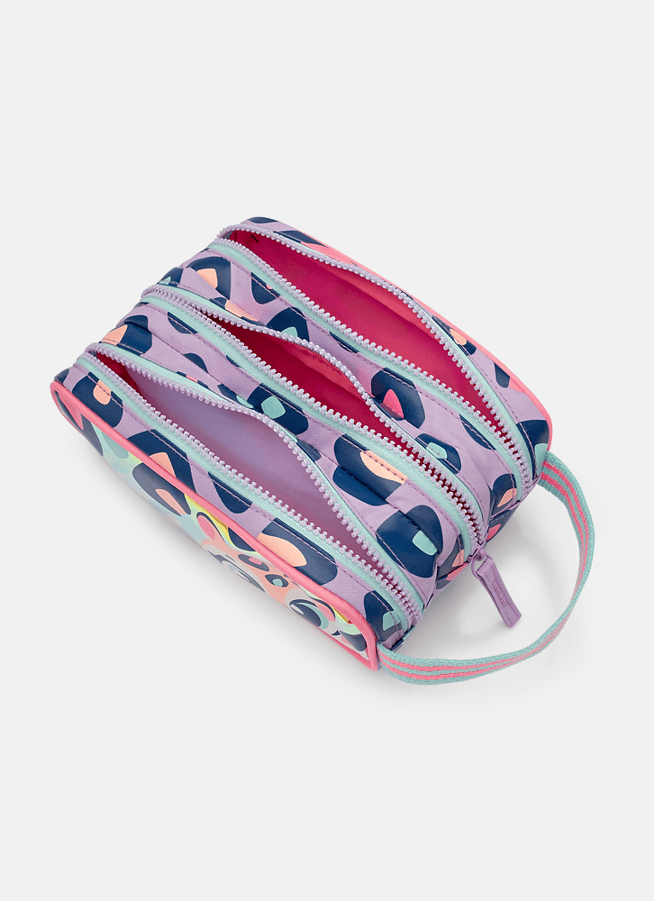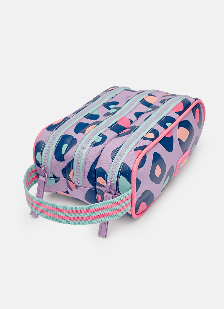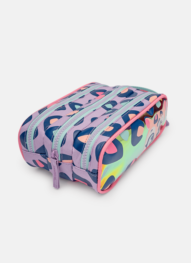 Estojo em nylon com 3 compartimentos amplos. Parte frontal em TPU holográfico com estampa de Onça fantástica