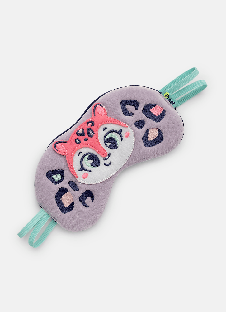 Tapa olhos com bordado de Onça Fantástica, forro em algodão e elástico duplo para melhor ajuste à cabeça.