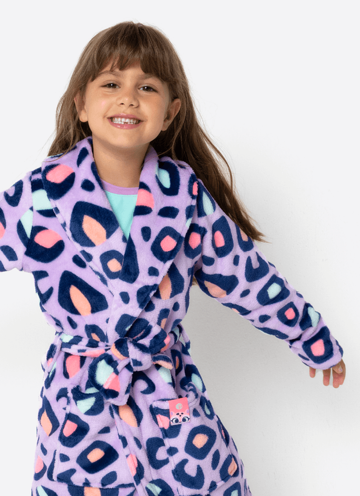 Roupão Manga Longa Soft Menina Onça