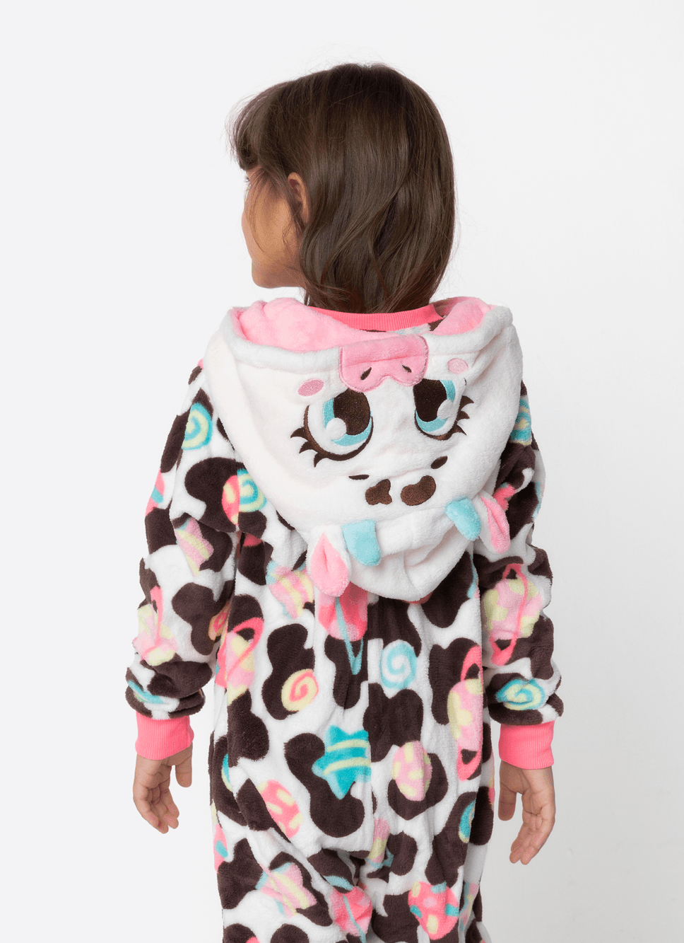 Macacão em coral fleece com estampa de vaquinha Puket <3