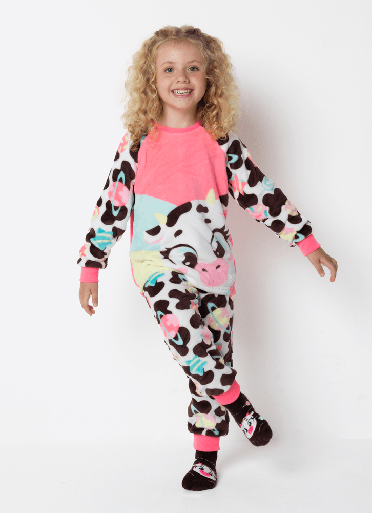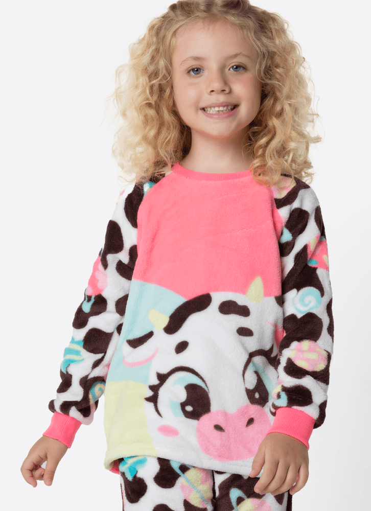 Pijama Manga Longa Soft Menina Vaca Chocolate