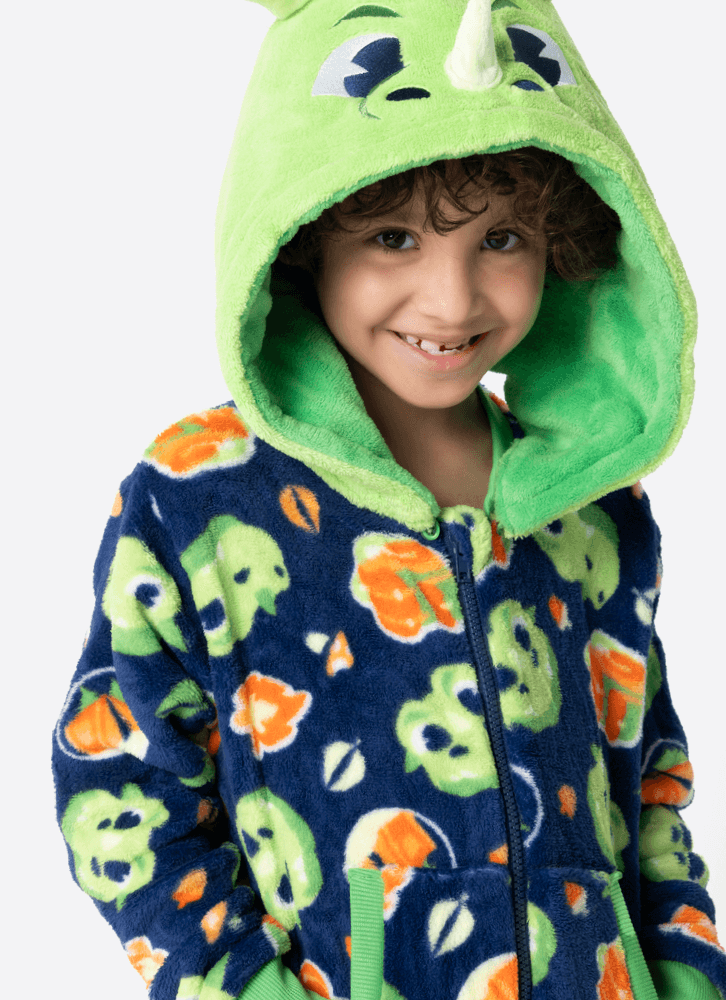Macacão em coral fleece com estampa do Dragão Puket <3