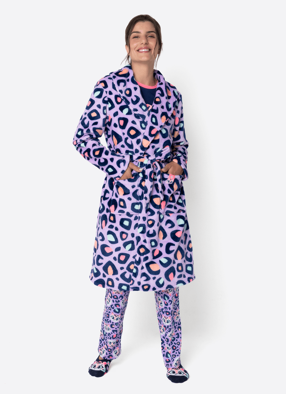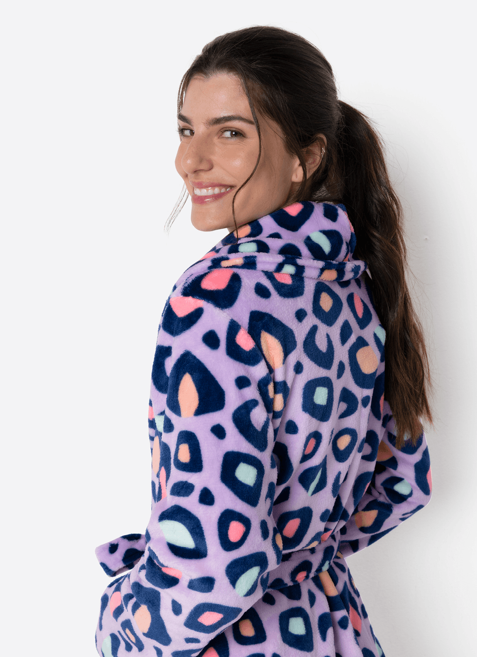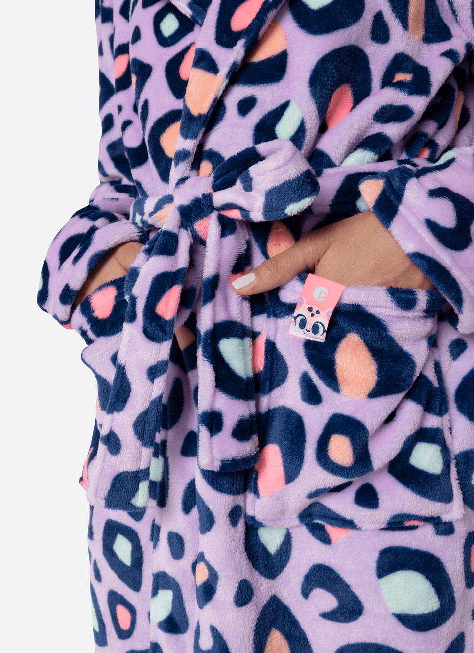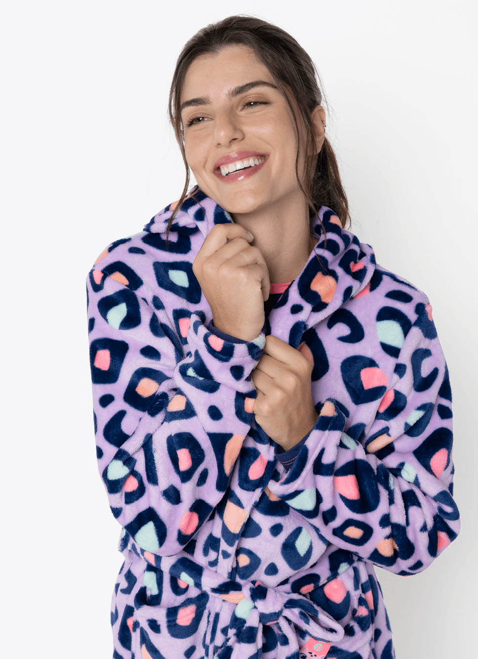 Roupão em coral fleece com estampa exclusiva e divertida de Onça Fantástico Puket.