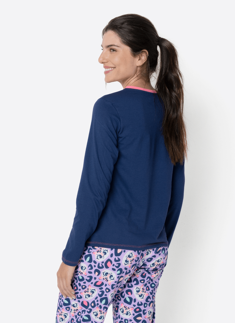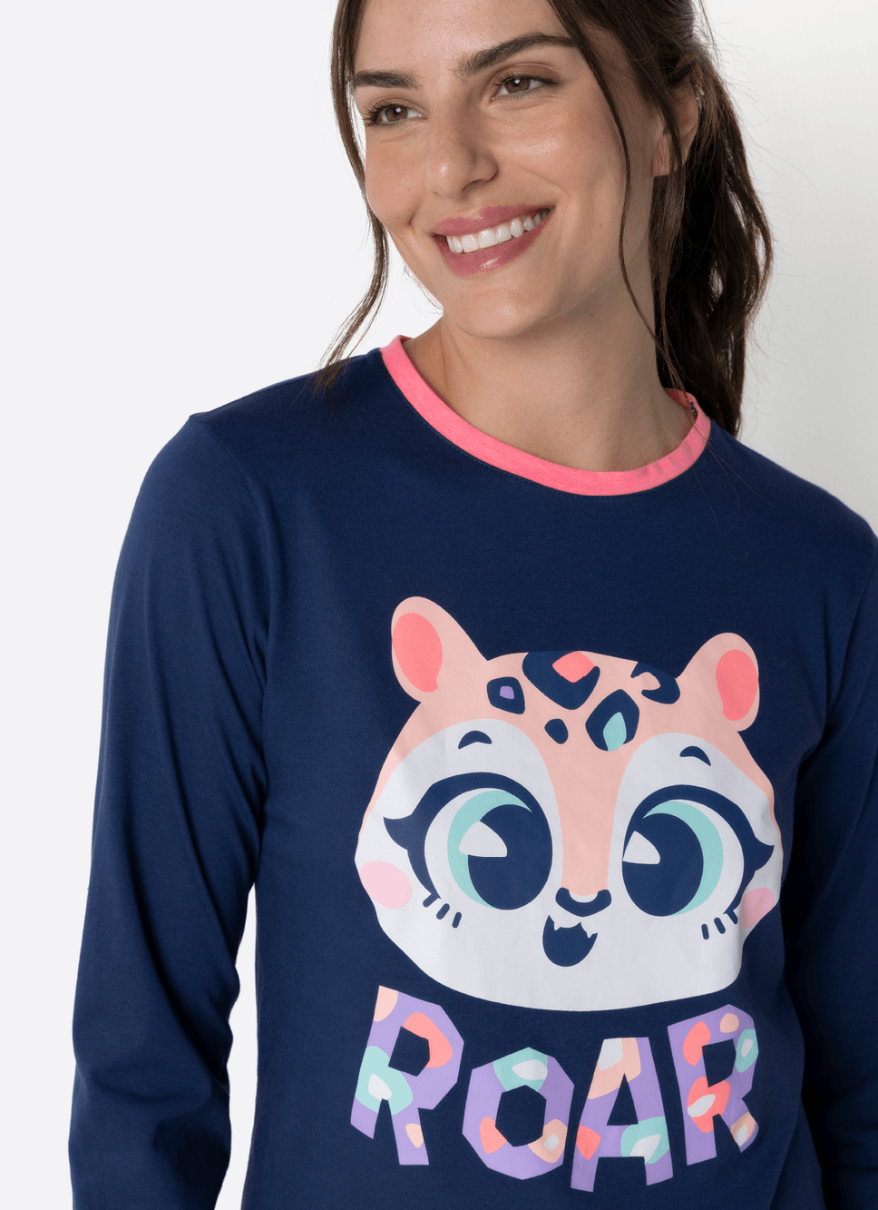 Pijama em meia malha de algodão com estampa exclusiva Onça fantástica