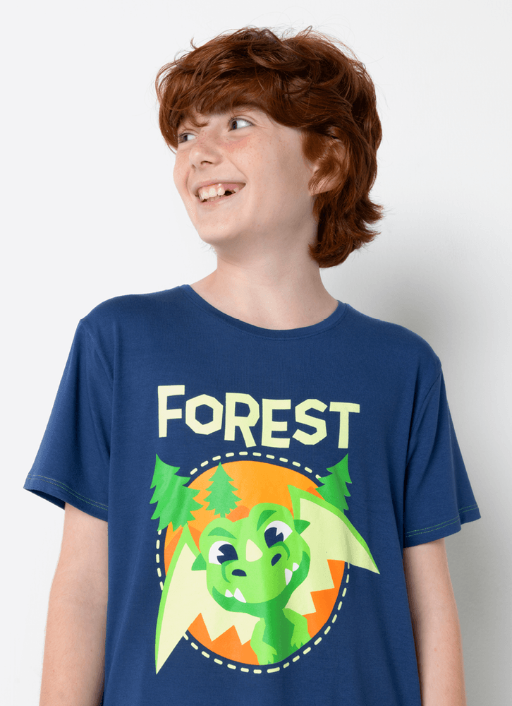 Pijama Manga Curta Menino Teen Dragão Camping