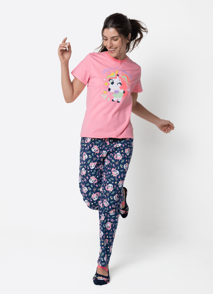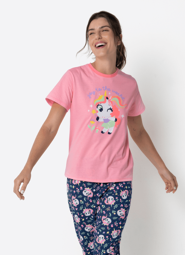 Pijama Manga Curta Algodão Feminino Unicórnio Encantado