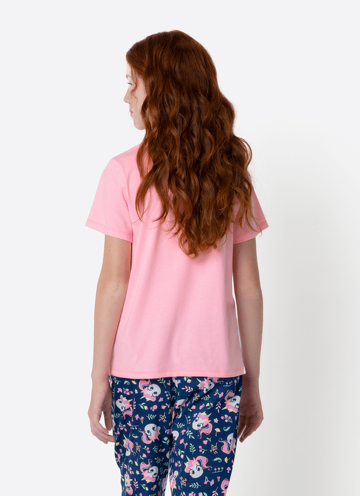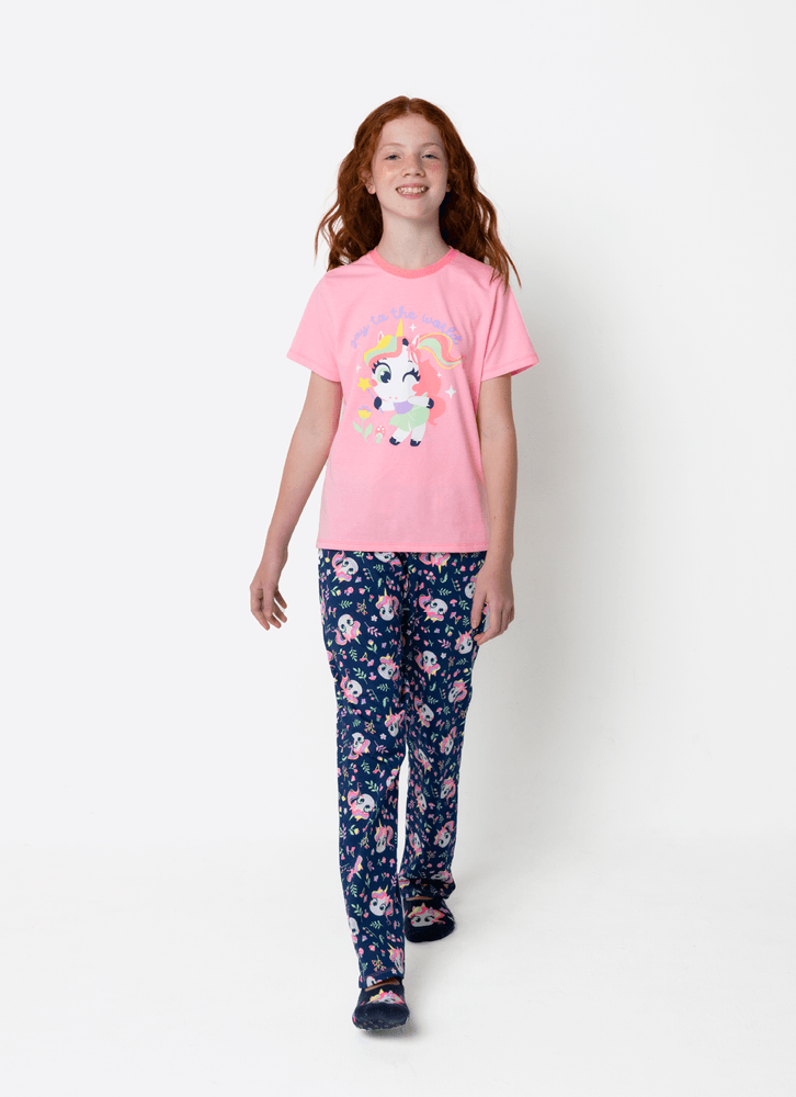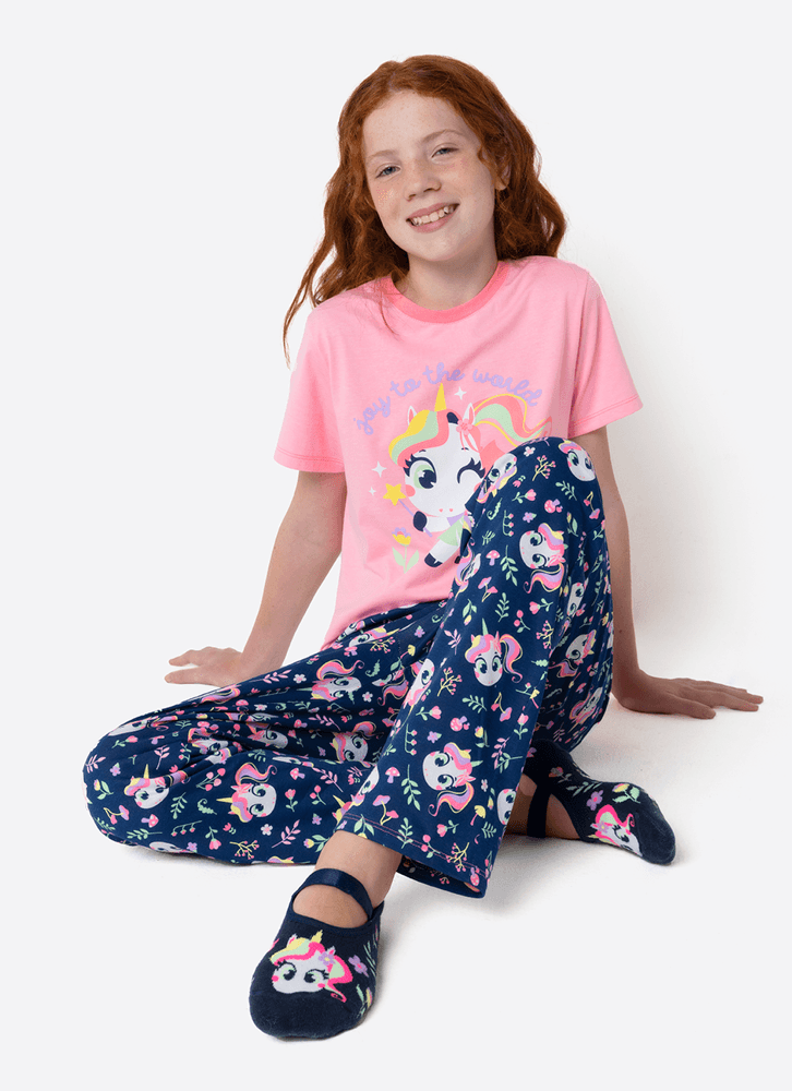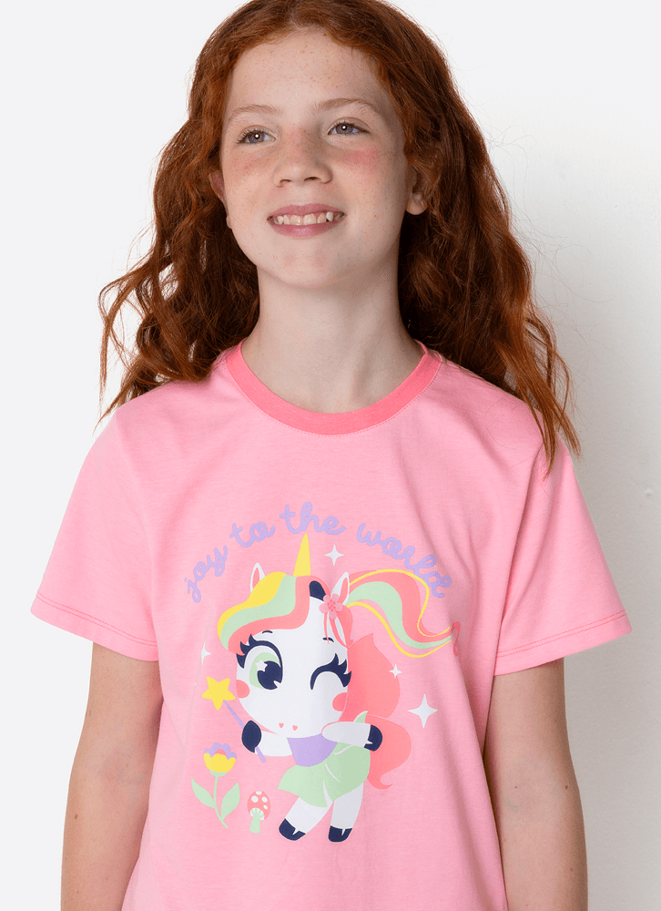 Pijama Manga Curta Algodão Menina Teen Unicórnio Encantado