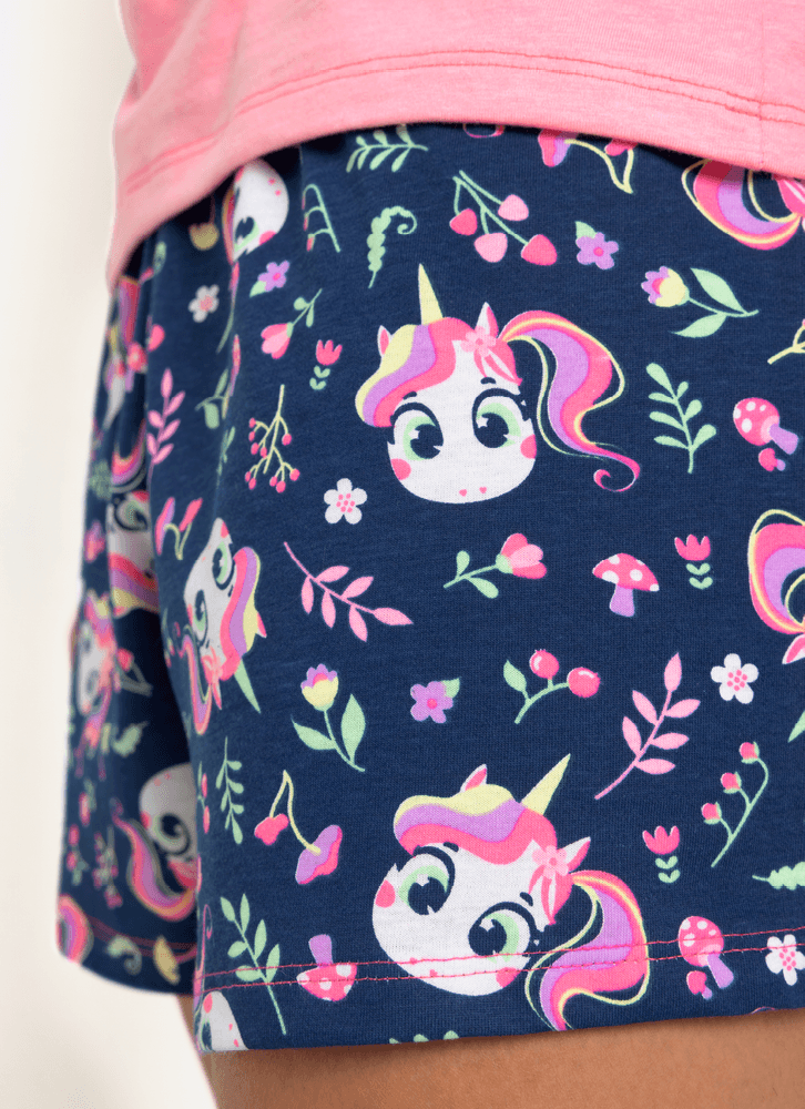 Pijama Manga Curta Feminino Unicórnio Encantado