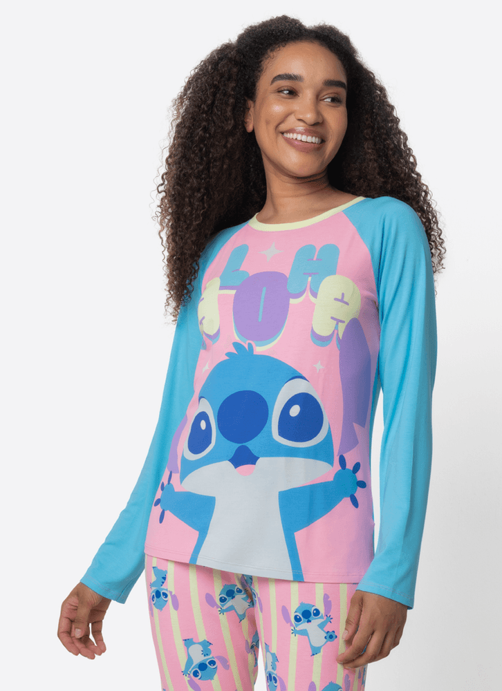 Pijama de viscolycra com estampa exclusiva e divertida Stitch Puket.