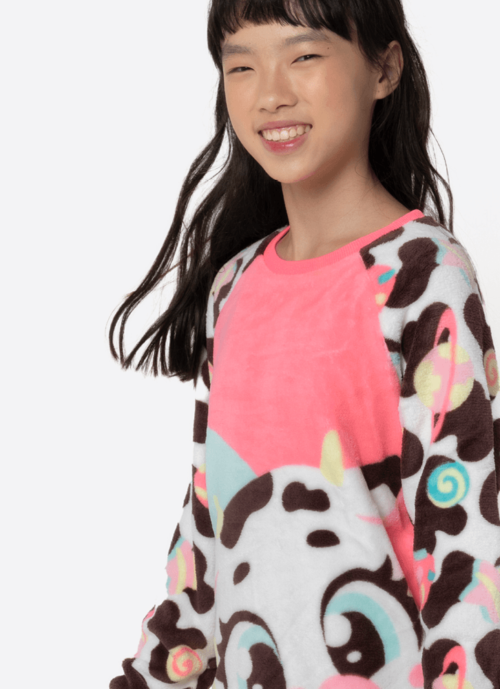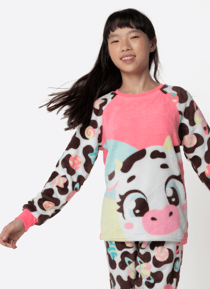 Pijama Manga Longa Soft Menina Teen Vaca Chocolate