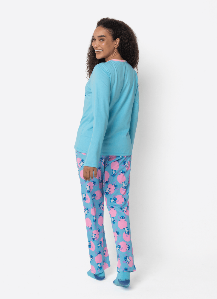 Pijama Manga Longa Algodão Feminino Stitch