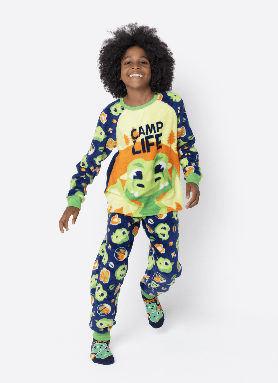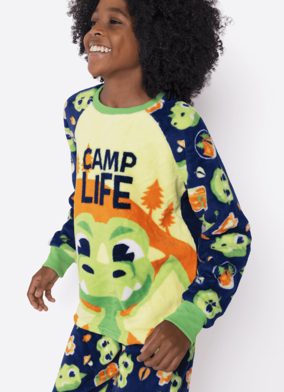 Pijama Manga Longa Soft Menino Teen Dragão Camping