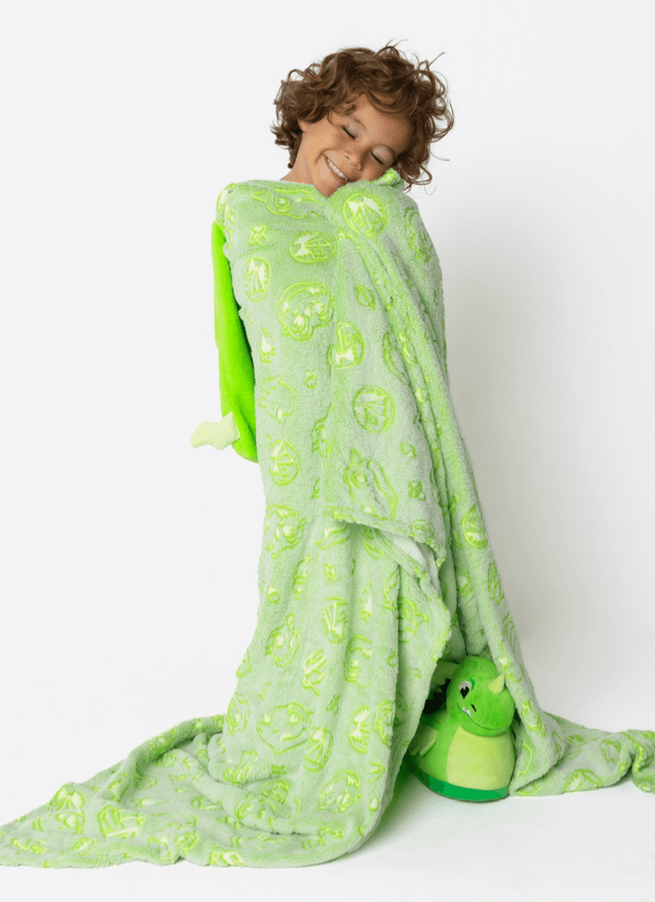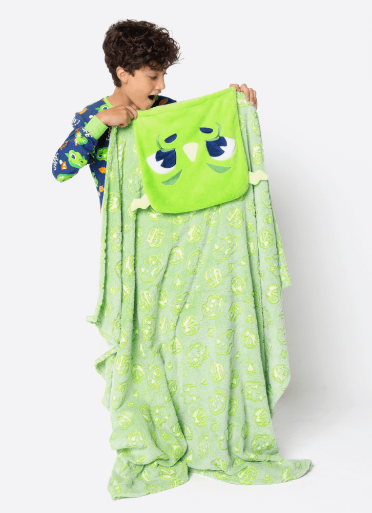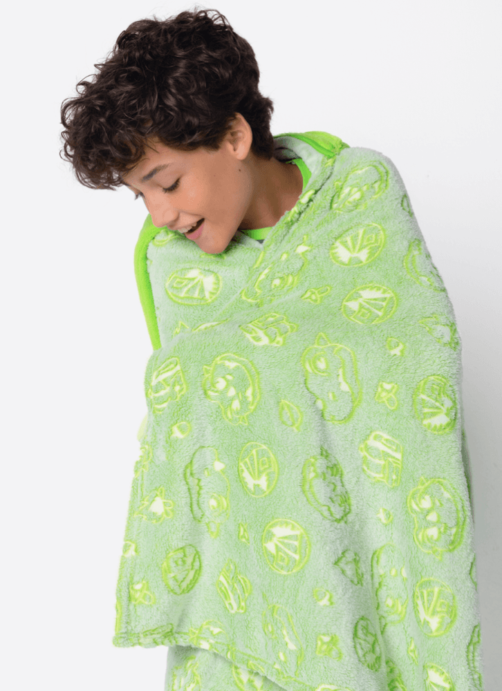 Manta em Coral Fleece com caimento agradável com estampa divertida e exclusiva Puket com brilha no escuro!
