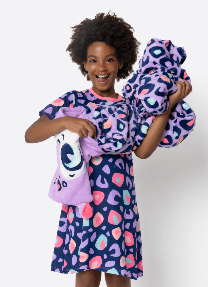 Manta em Coral Fleece com caimento agradável com estampa divertida e exclusiva Puket!