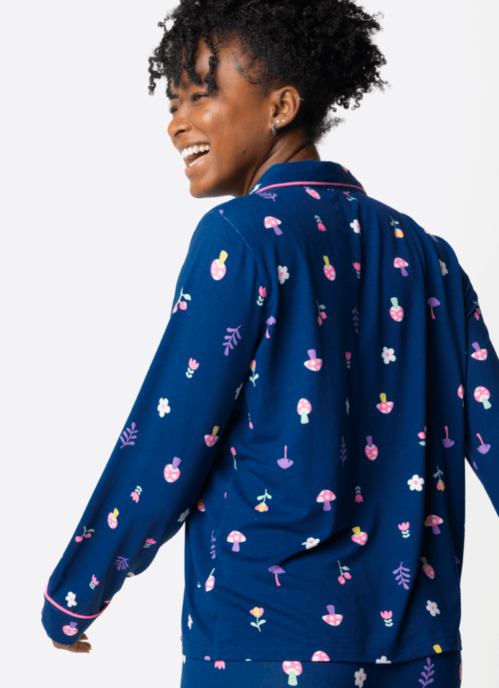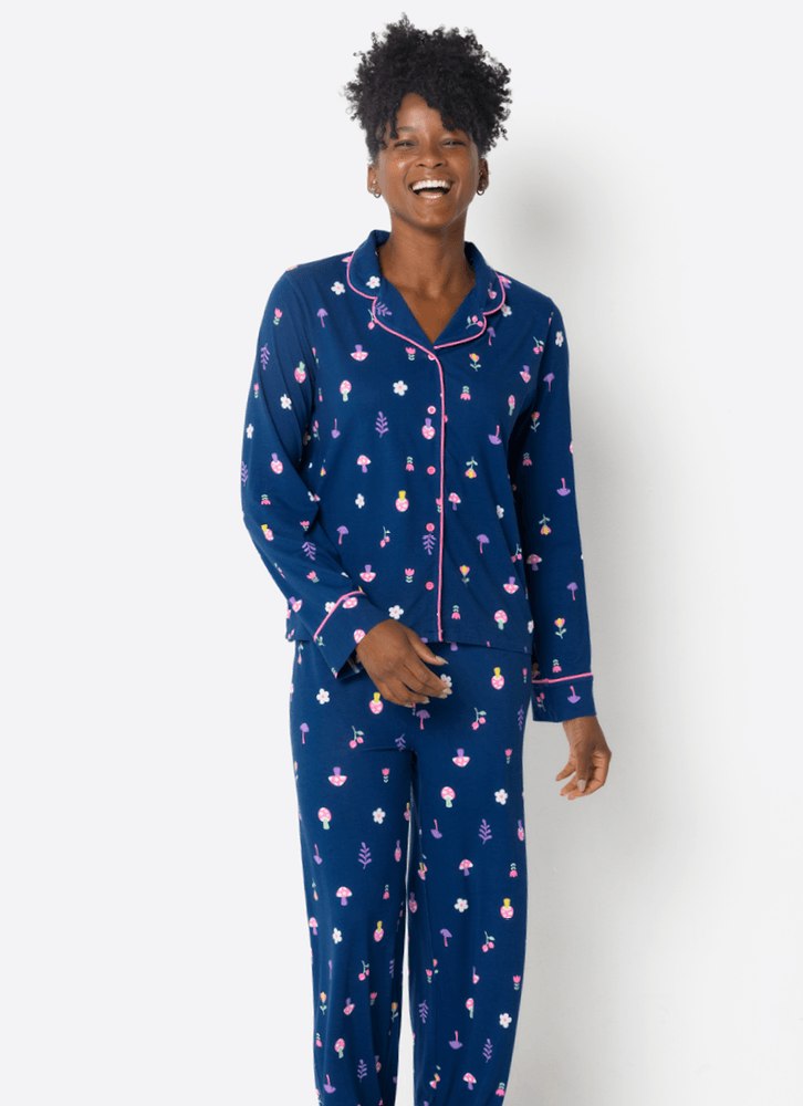 Conjunto composto por camisa de mangas longas + calça com acabamento em cores contrastantes. Tecido leve e de ótimo caimento para dias e noites mais confortáveis.