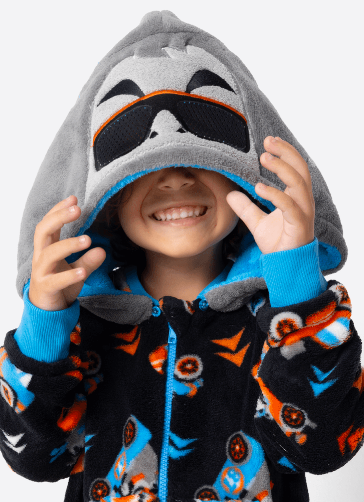 Capuz bordado e com aplique 3D do rostinho do personagem;