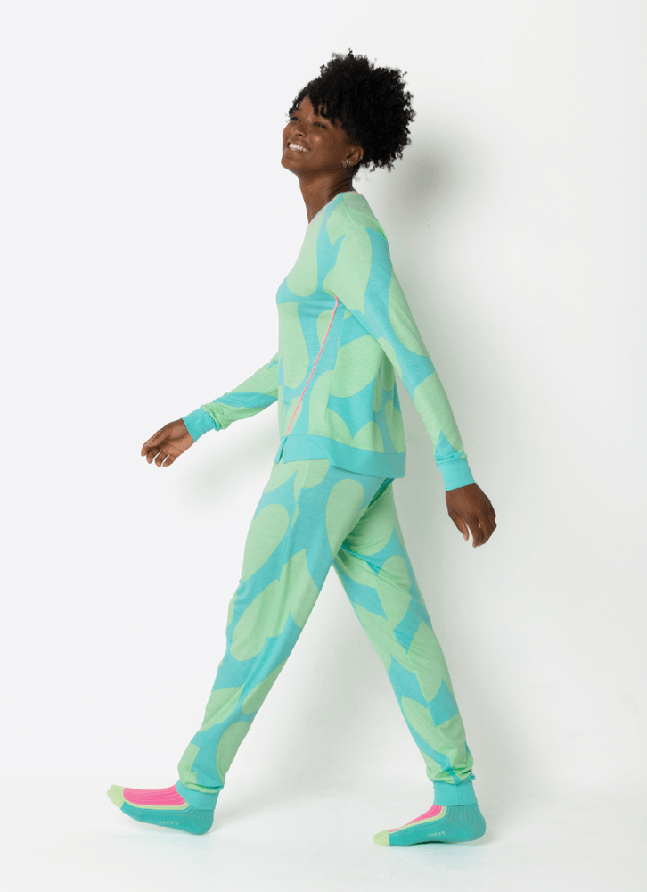 Calça estampada com elástico macio embutido na cintura.