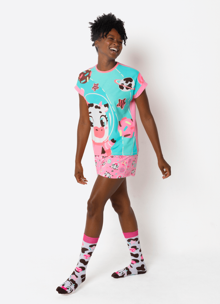 Pijama Manga Curta com estampa divertida e exclusiva Vaca Puket.