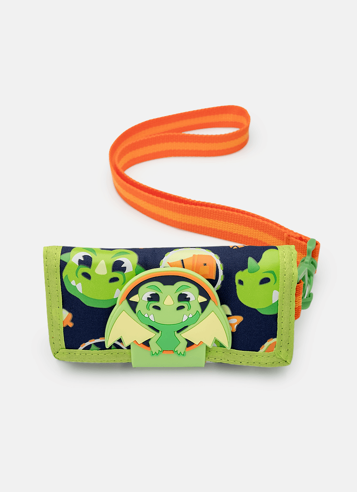 Carteira em nylon com estampa de Dragão e alça removível. Possui aplique emborrachado para fechamento e bolso interno com fechamento em zíper.