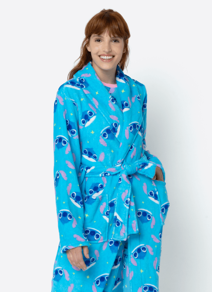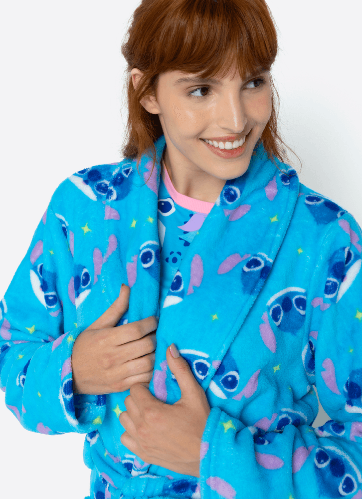 Roupão em coral fleece com estampa exclusiva e divertida de Stitch Puket <3.