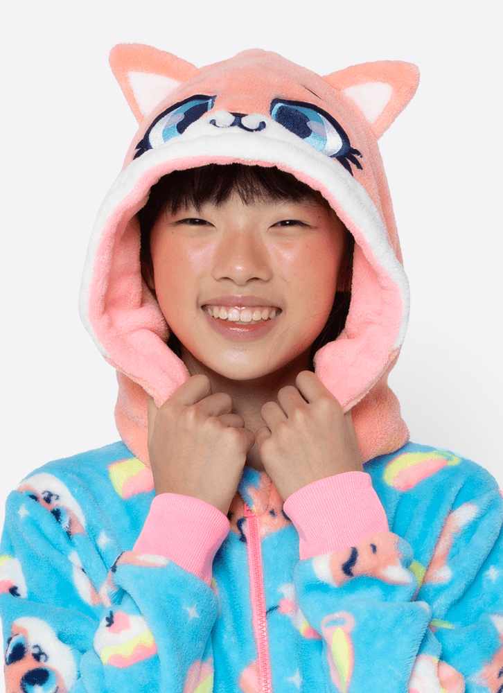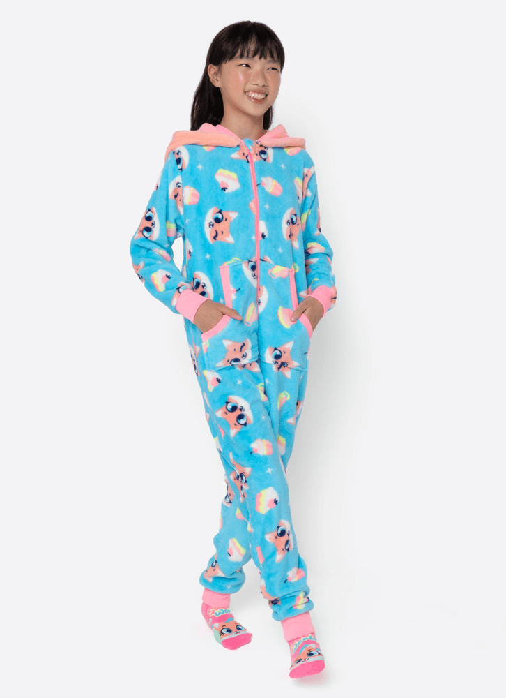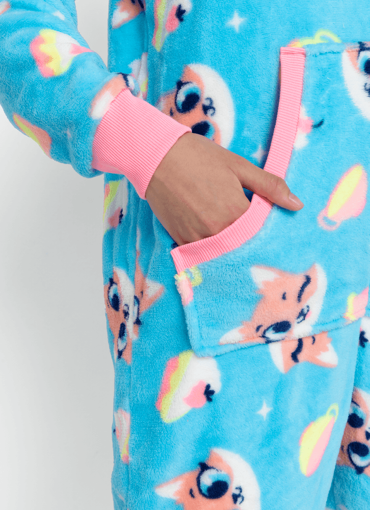 Macacão em coral fleece com estampa do Raposa confeiteira Puket <3