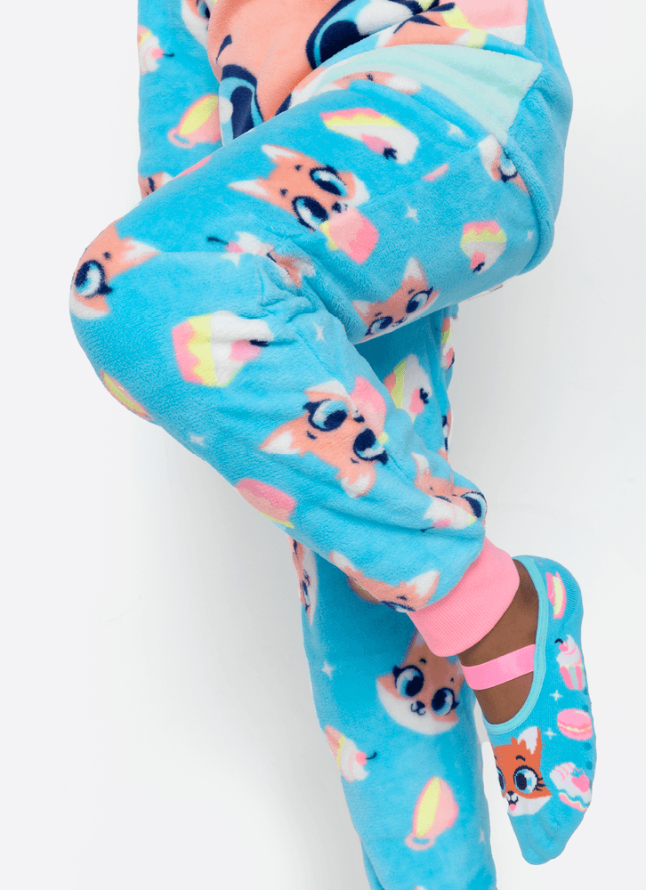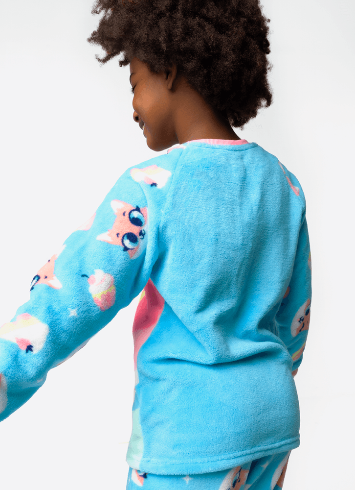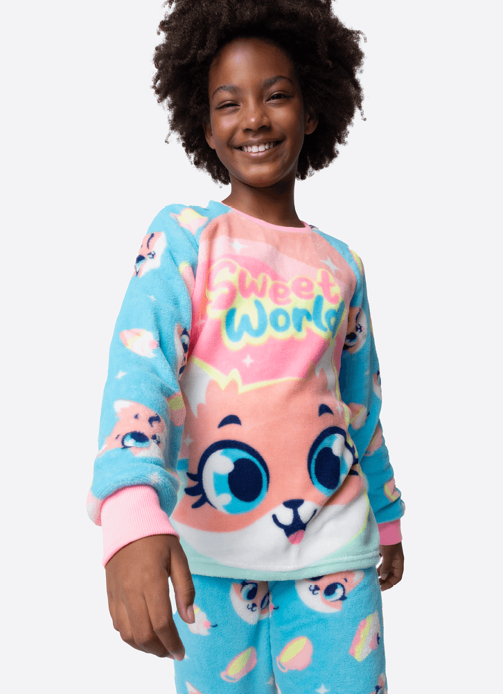 Pijama em coral fleece com estampa de Raposa confeiteira Puket.