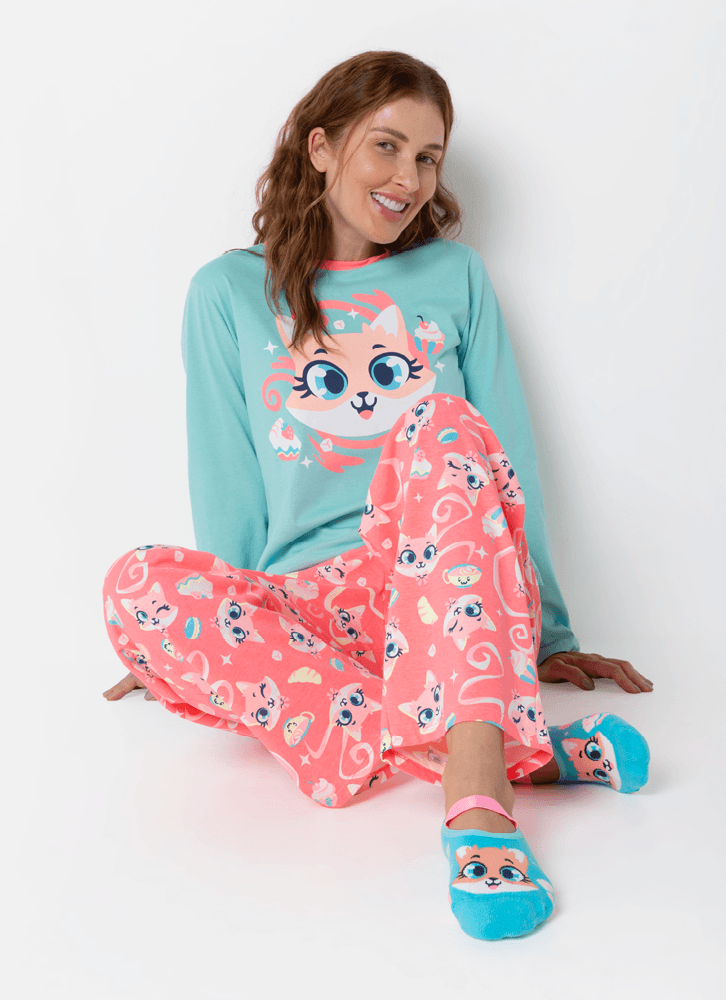 Pijama Manga Longa Algodão Feminino Raposa Confeiteira
