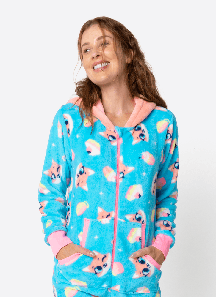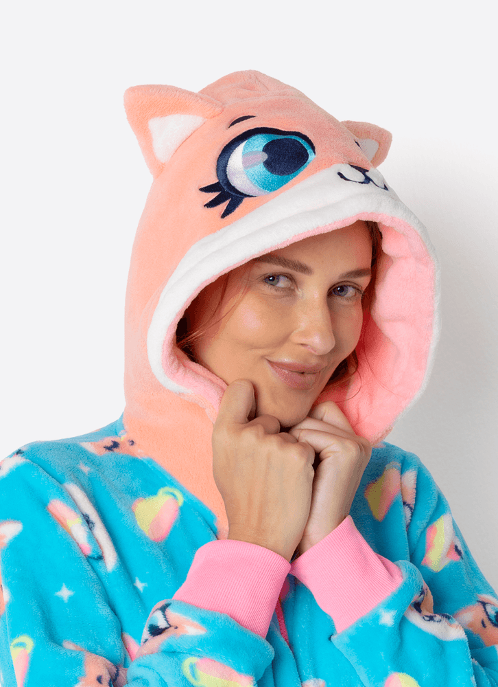 Macacão em coral fleece com estampa do Raposa confeiteira Puket <3