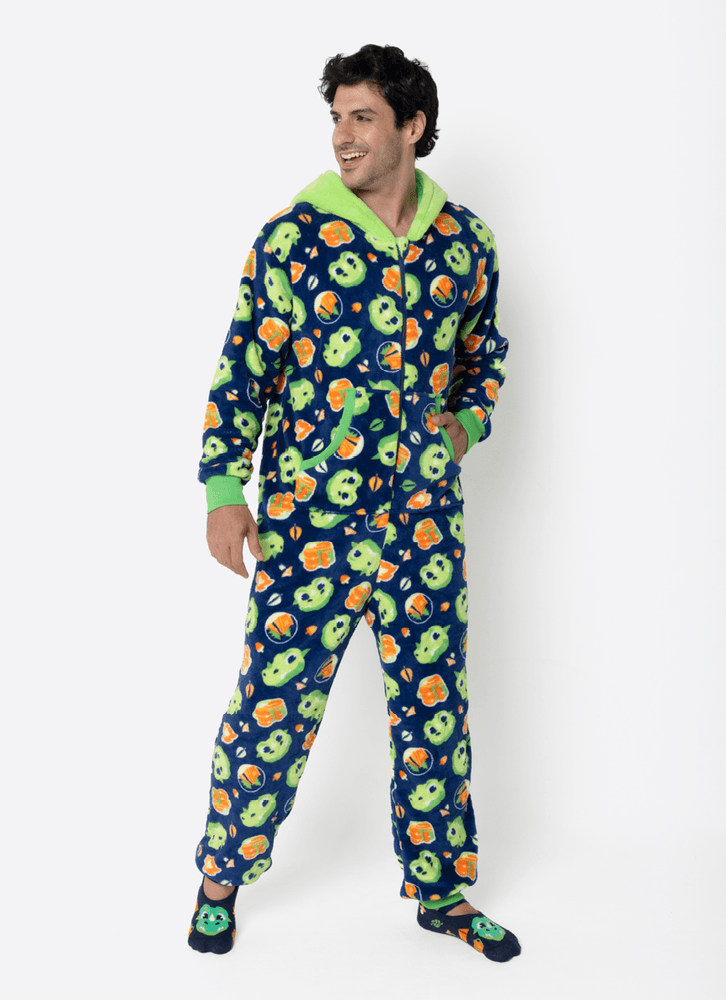 Macacão em coral fleece com estampa do Dragão Puket <3