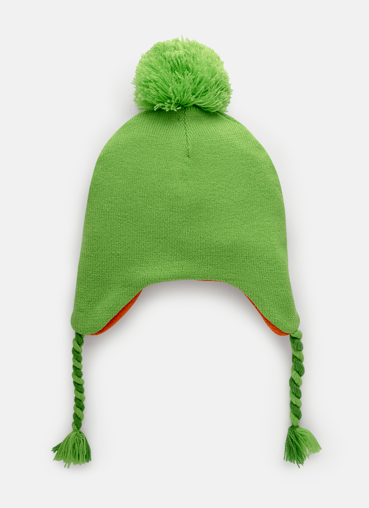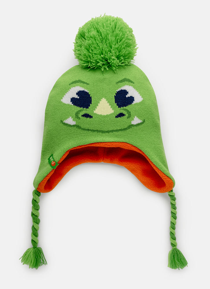 Gorro baby em acrílico. Possui padrão de dragão, trancinhas e pompom no topo. Forro em tecido macio.