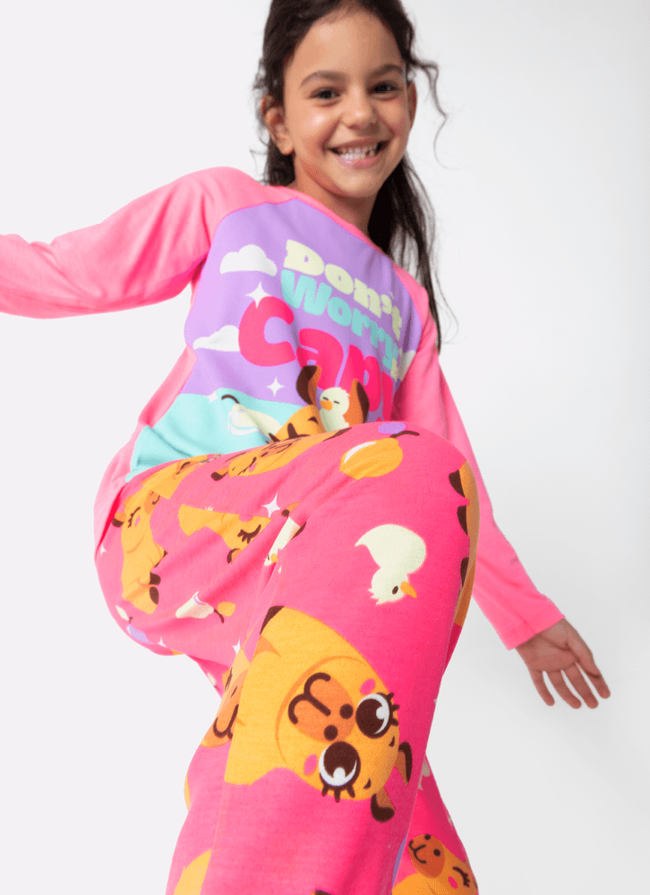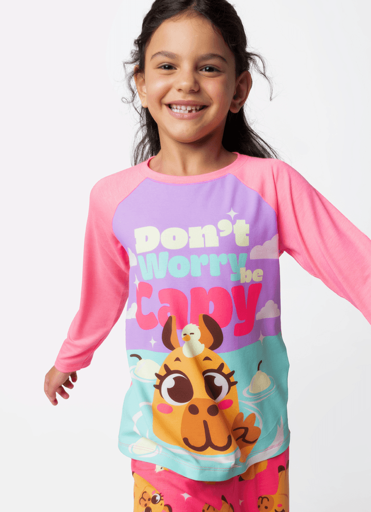 Pijama Manga Longa Viscolycra Menina Capivara Vibes
