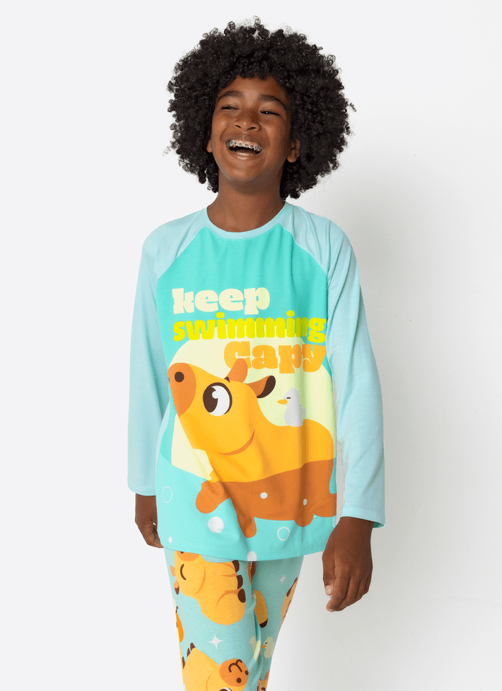 Pijama Manga Longa Viscolycra Menino Teen Capivara Vibes