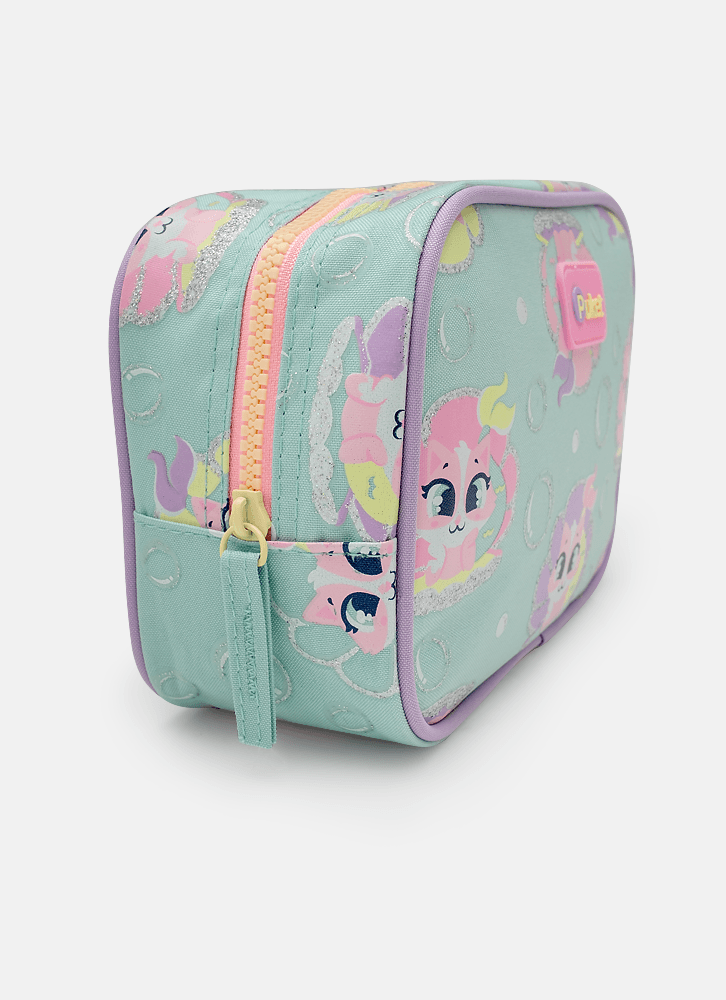 A necessaire média é perfeita para te acompanhar no dia a dia, pois tem o tamanho ideal para guardar seus principais itens. Com estampa corrida de gata sereia.