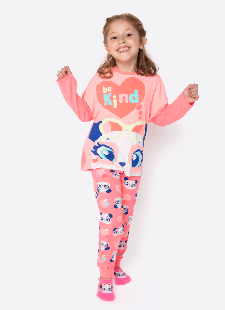 Pijama Manga Longa Viscolycra Menina Panda Romântico