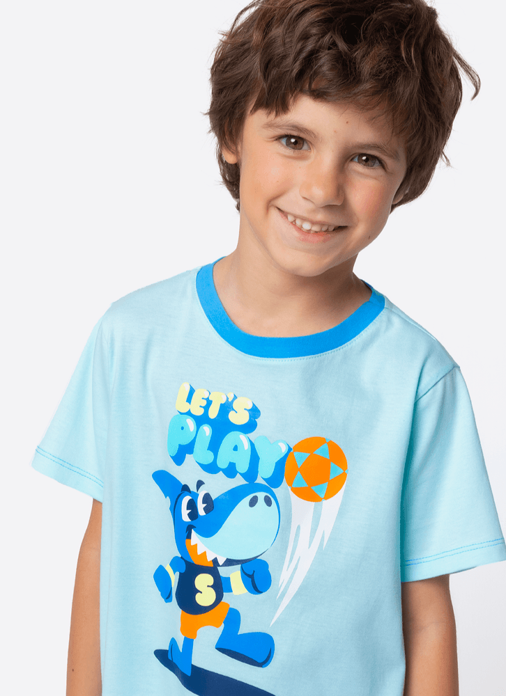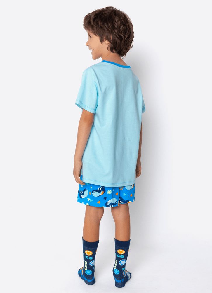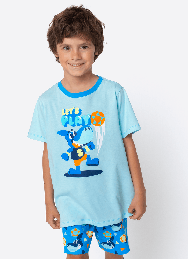 Pijama Manga Curta Algodão Menino Tubarão Futevôlei