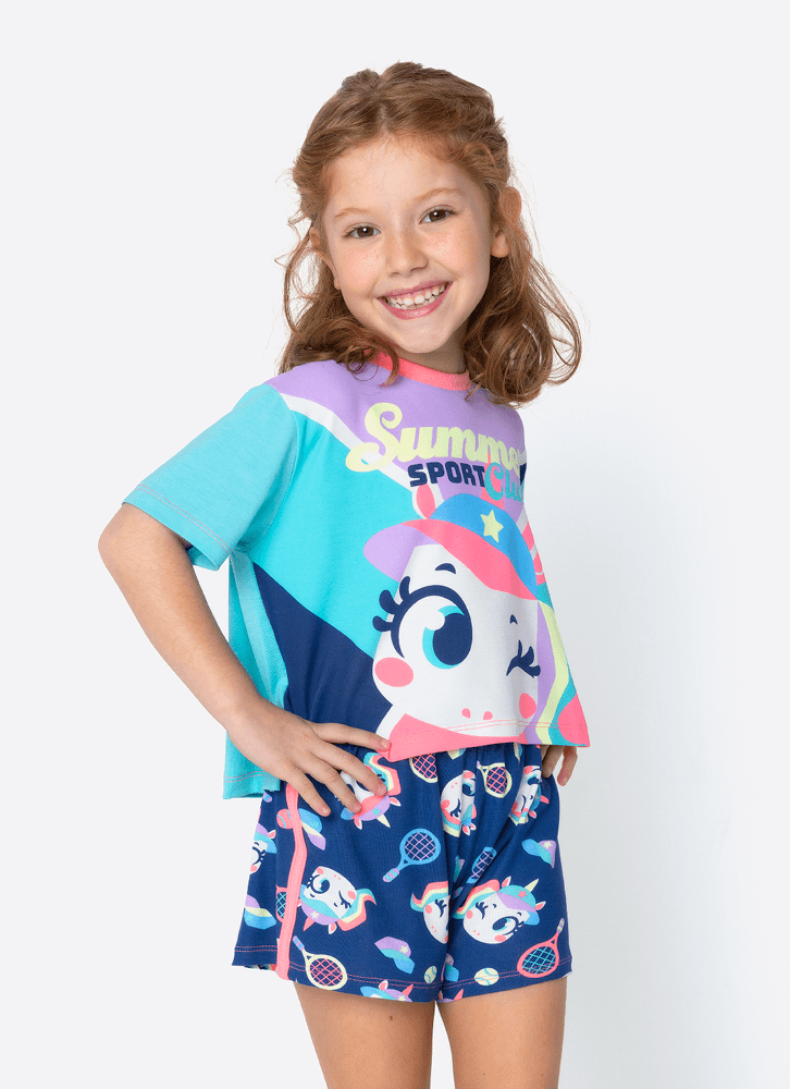 Pijama Manga Curta Viscolycra Menina Unicórnio Tênis
