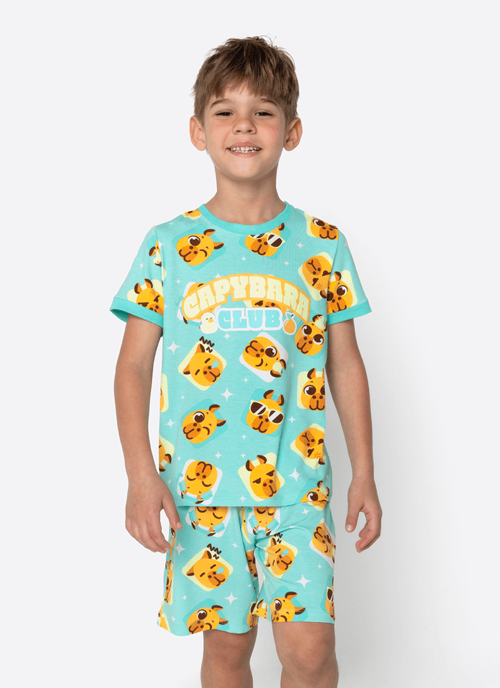 Pijama Manga Curta com estampa divertida e exclusiva Capivara Puket.