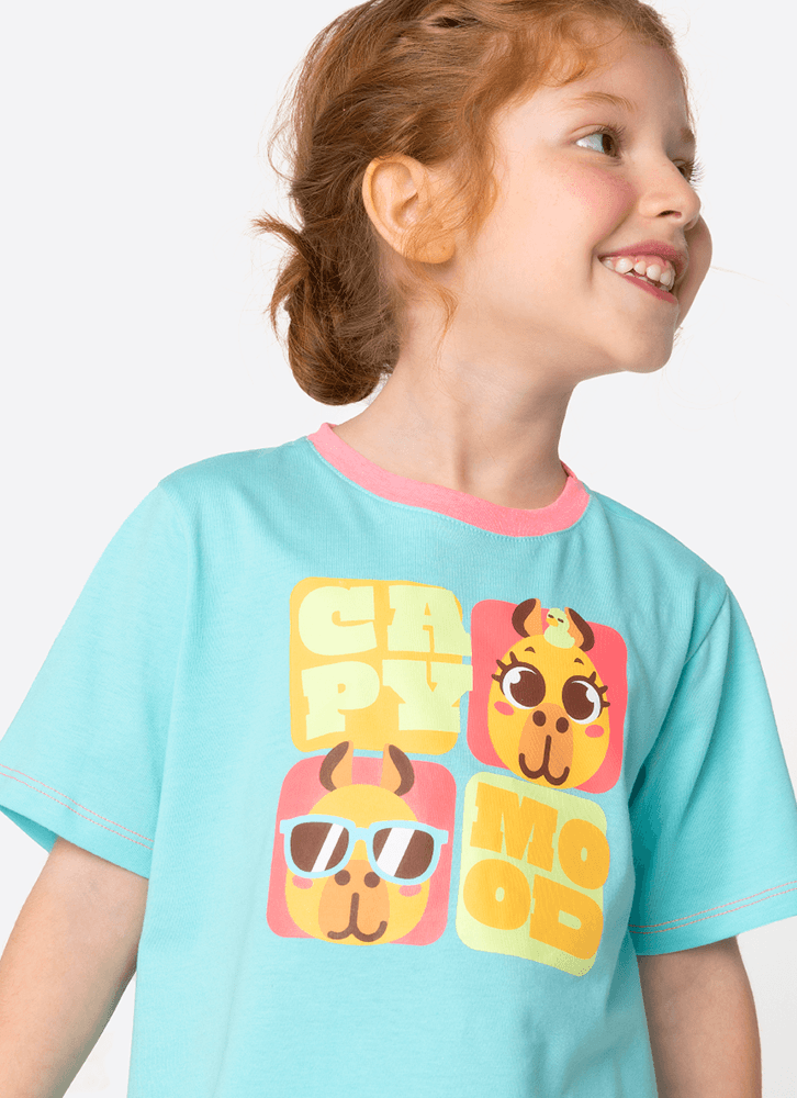 Pijama manga curta com estampa divertida e exclusiva Capivara para Puket