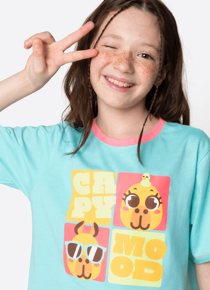 Pijama manga curta com estampa divertida e exclusiva Capivara para Puket