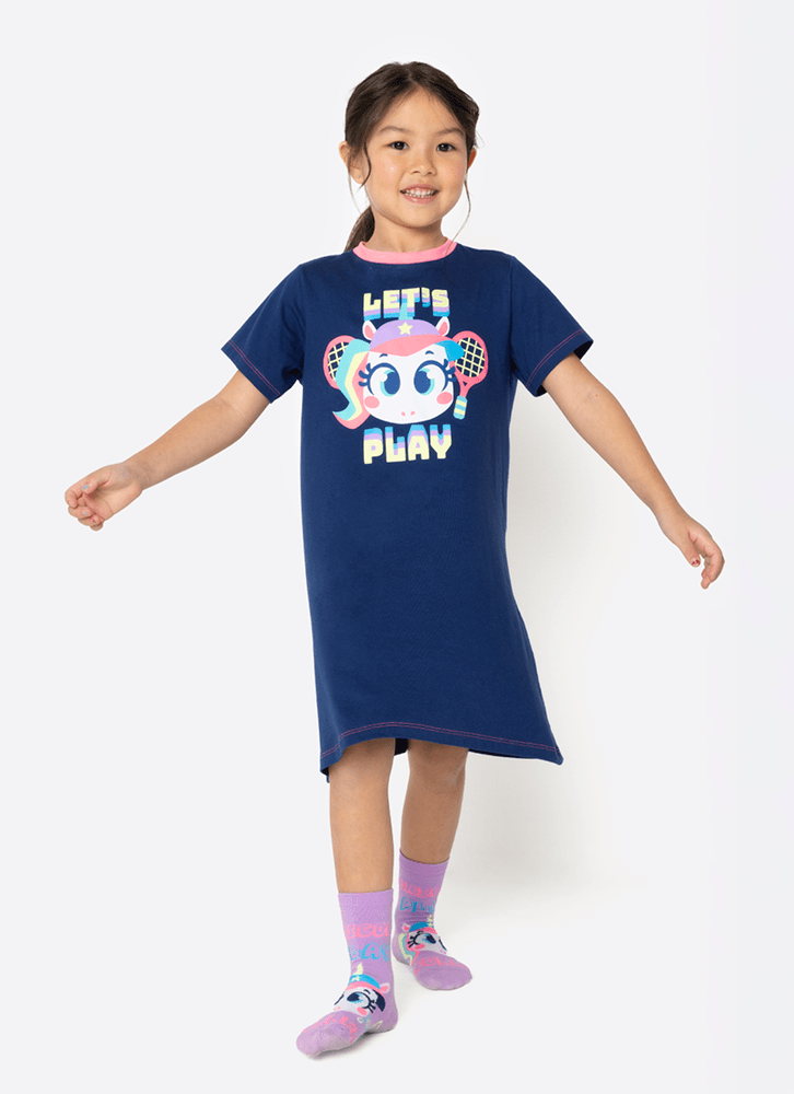 Camisola Manga Curta Algodão Menina Unicórnio Tênis