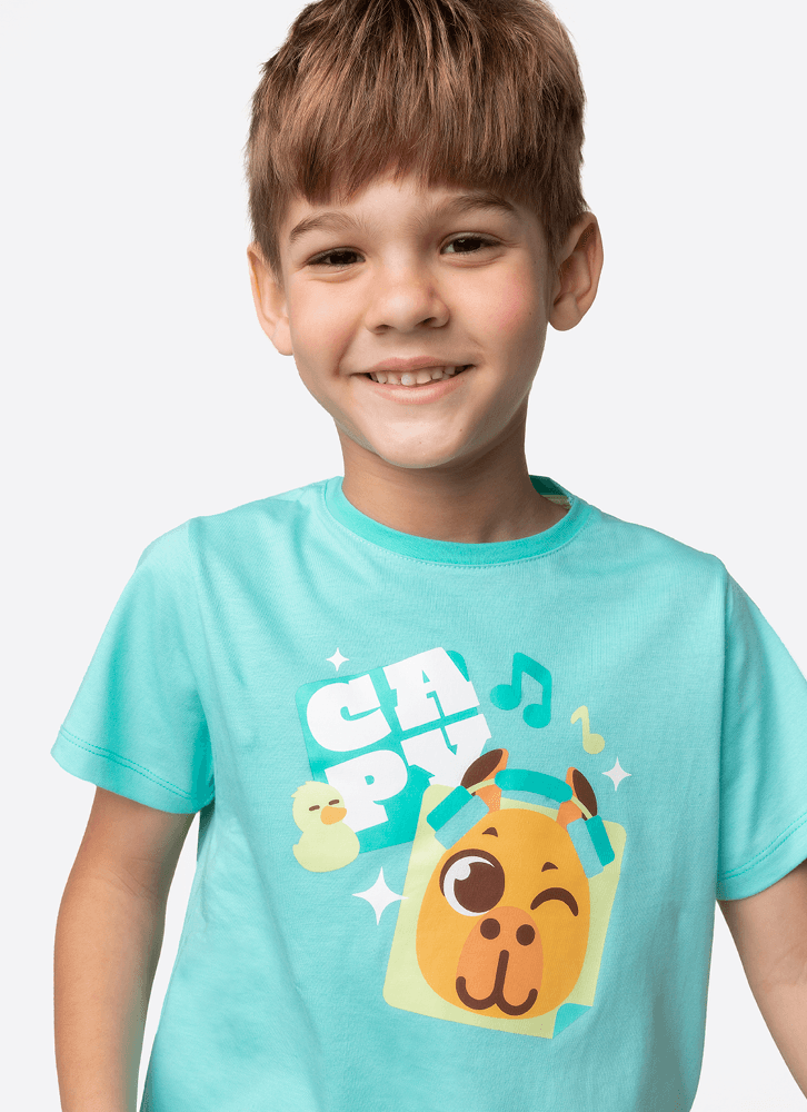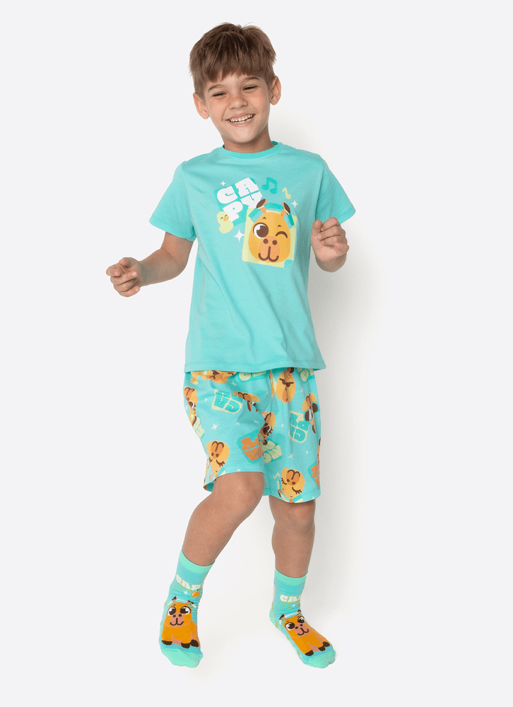 Pijama manga curta com estampa divertida e exclusiva Capivara para Puket