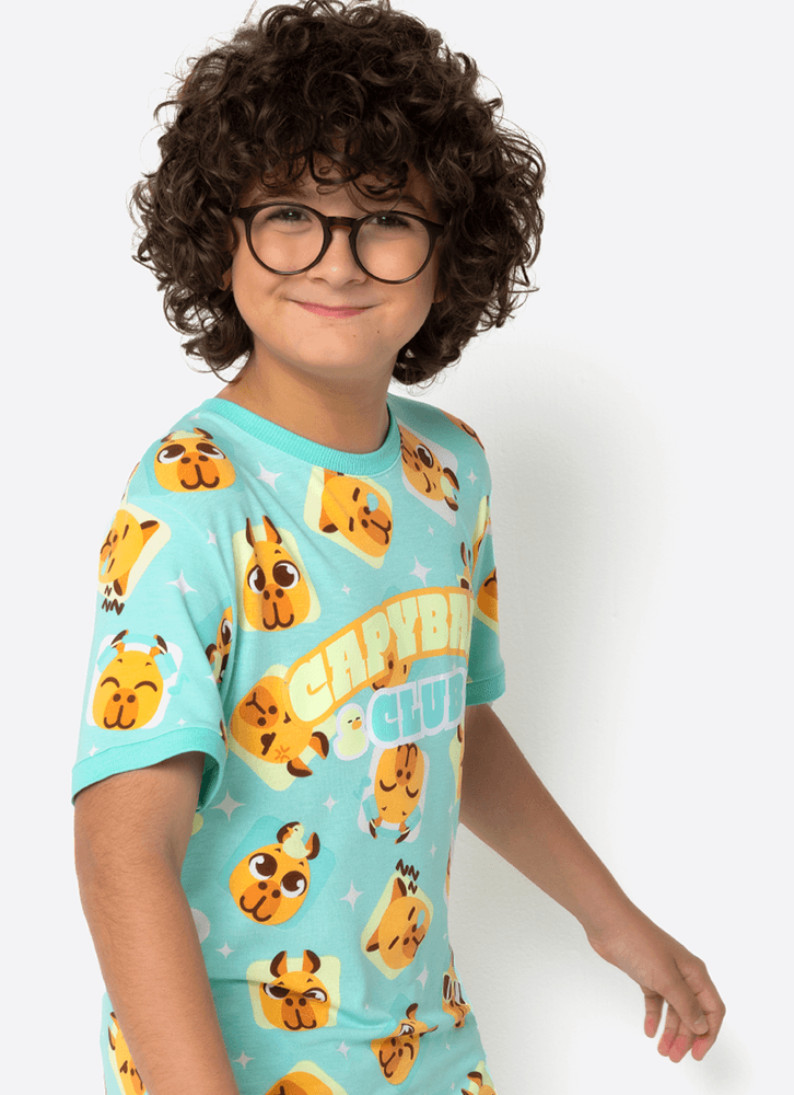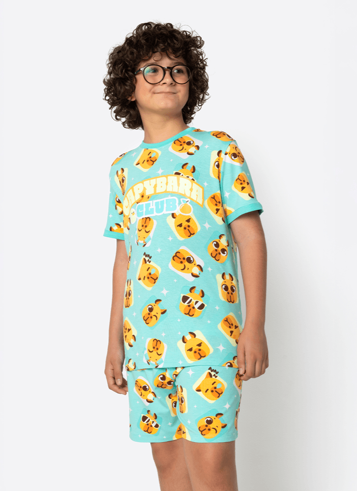 Pijama Manga Curta com estampa divertida e exclusiva Capivara Puket.