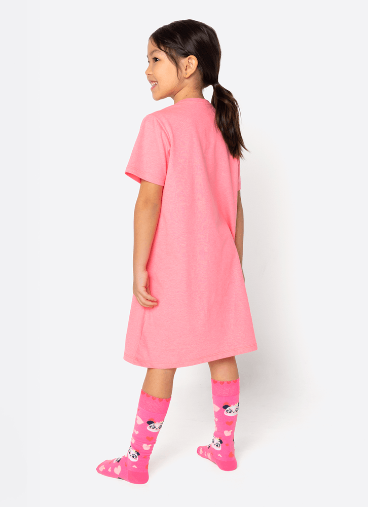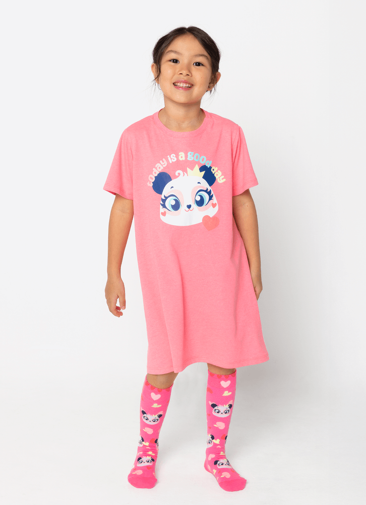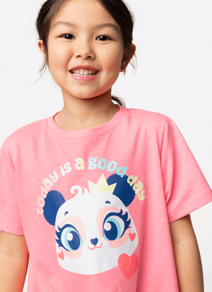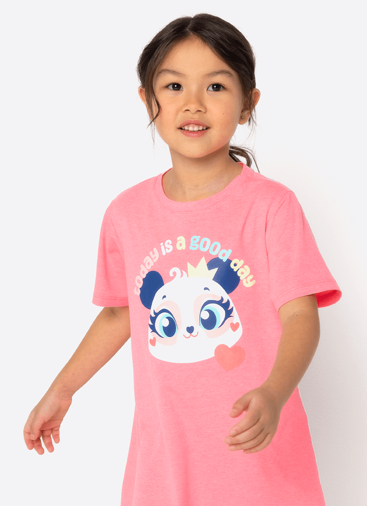 Camisola Manga Curta Algodão Menina Panda Romântico