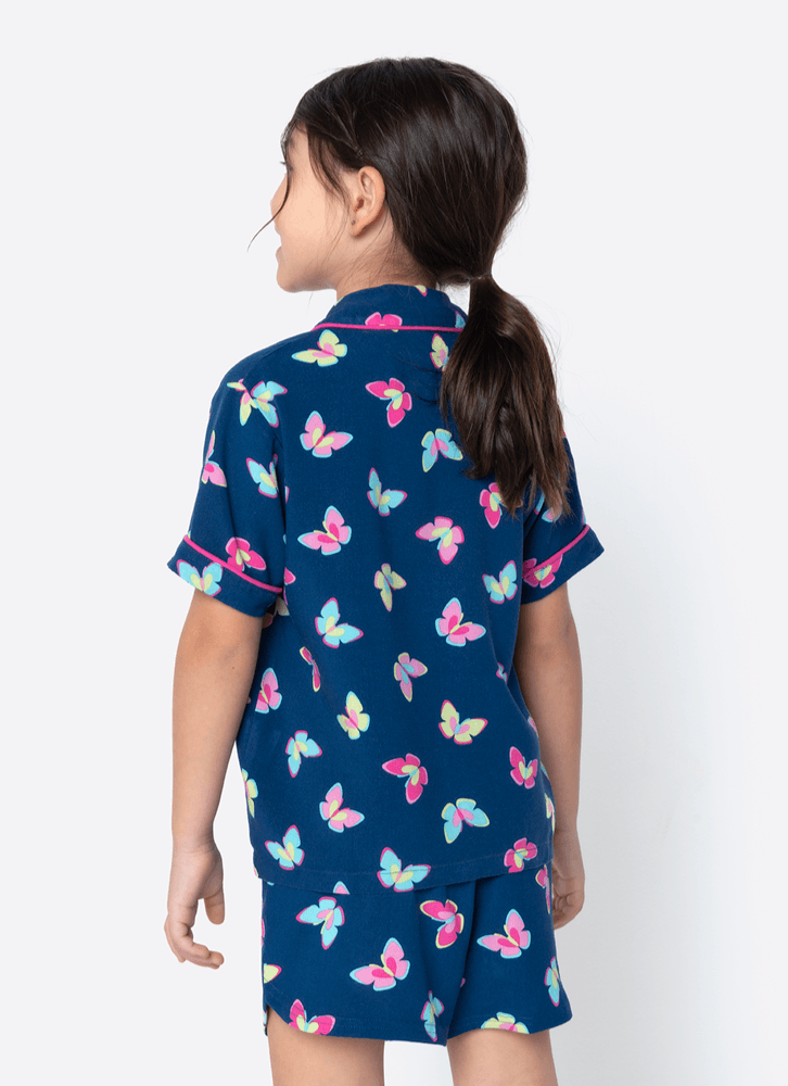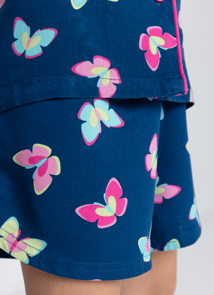 Conjunto composto por camisa de mangas curtas + short com acabamento em cores contrastantes. Tecido leve e de ótimo caimento para dias e noites mais confortáveis.
